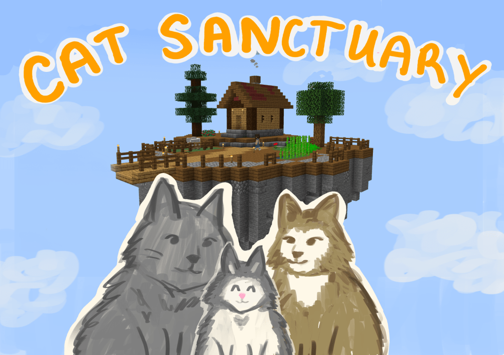 Here’s another silly example, and I might actually use this concept for a future Skyblock video. My challenge was that I needed to create some kind of art based on the thumbnail, so I used the gesture and concept, and applied it to cats! 🙂